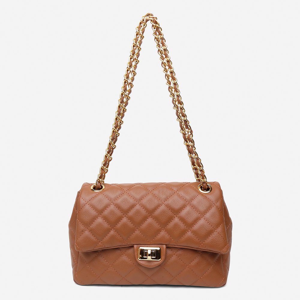 Bolsa Feminina de Couro Legítimo Caramelo Vittal Barbara Design Matelassê