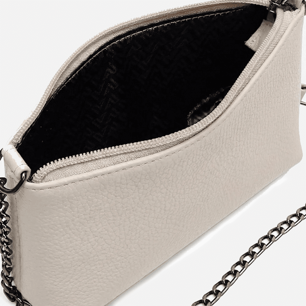 Bolsa Feminina Vittal Clutch Annelise em Couro Legitimo OffWhite Alça Corrente