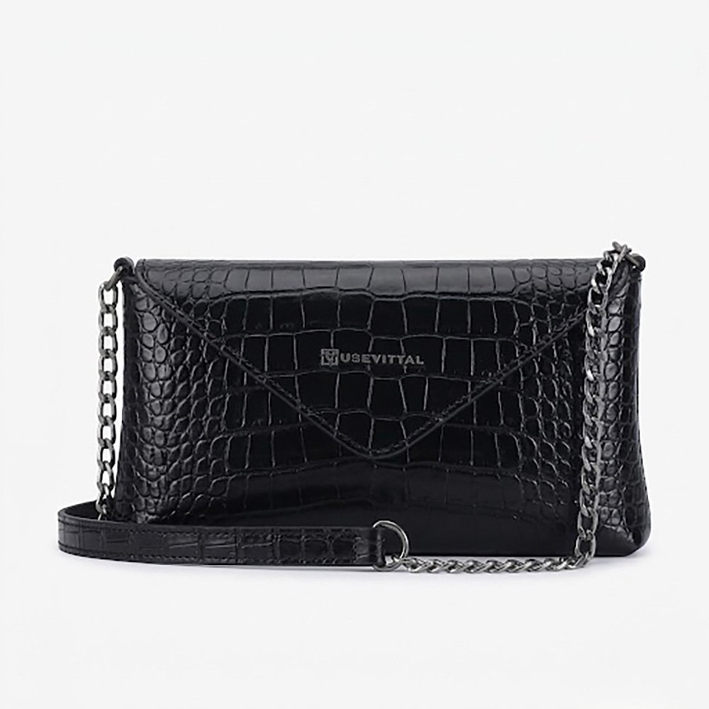 Bolsa Vittal Eloá em Couro Legítimo Croco Preta