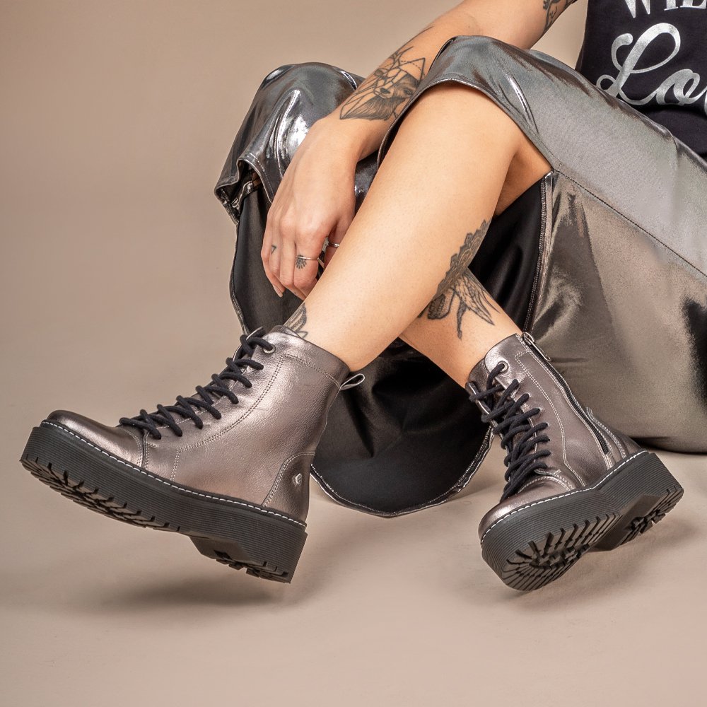 Bota Coturno Feminino Vittal Premium em Couro Prata Velho
