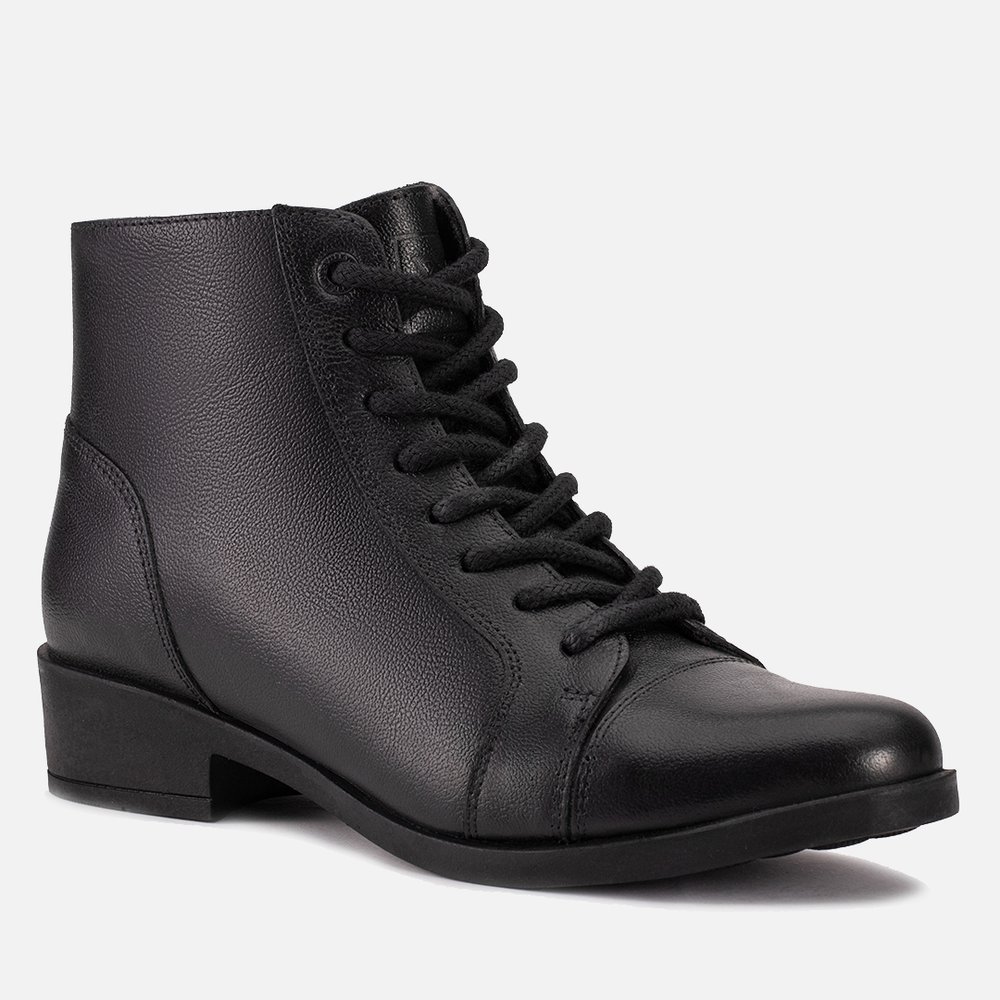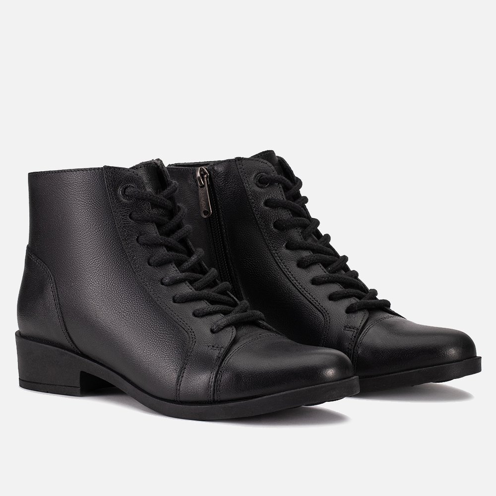 Bota Feminina Vittal Jenifer em Couro Legitimo Cano Curto Fechamento Cadarço