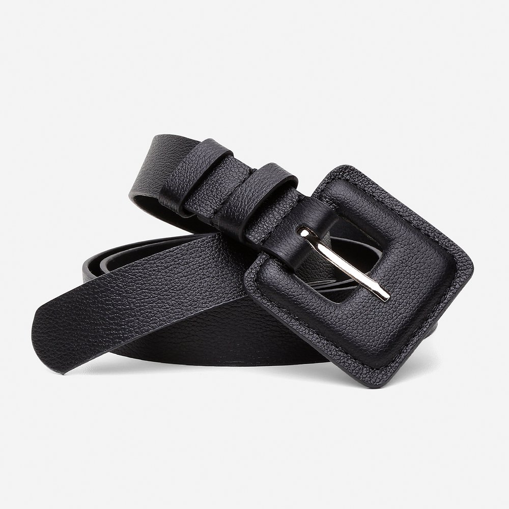 Cinto Feminino Paola Vittal Couro Preto Fivela Quadrada