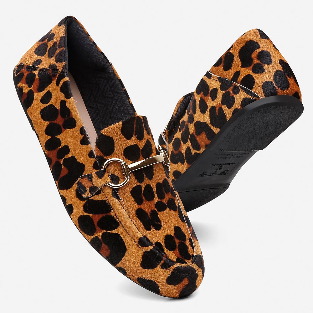 Mocassim Feminino Vittal Aurora em Couro Legítimo Animal Print com Fivela Dourada