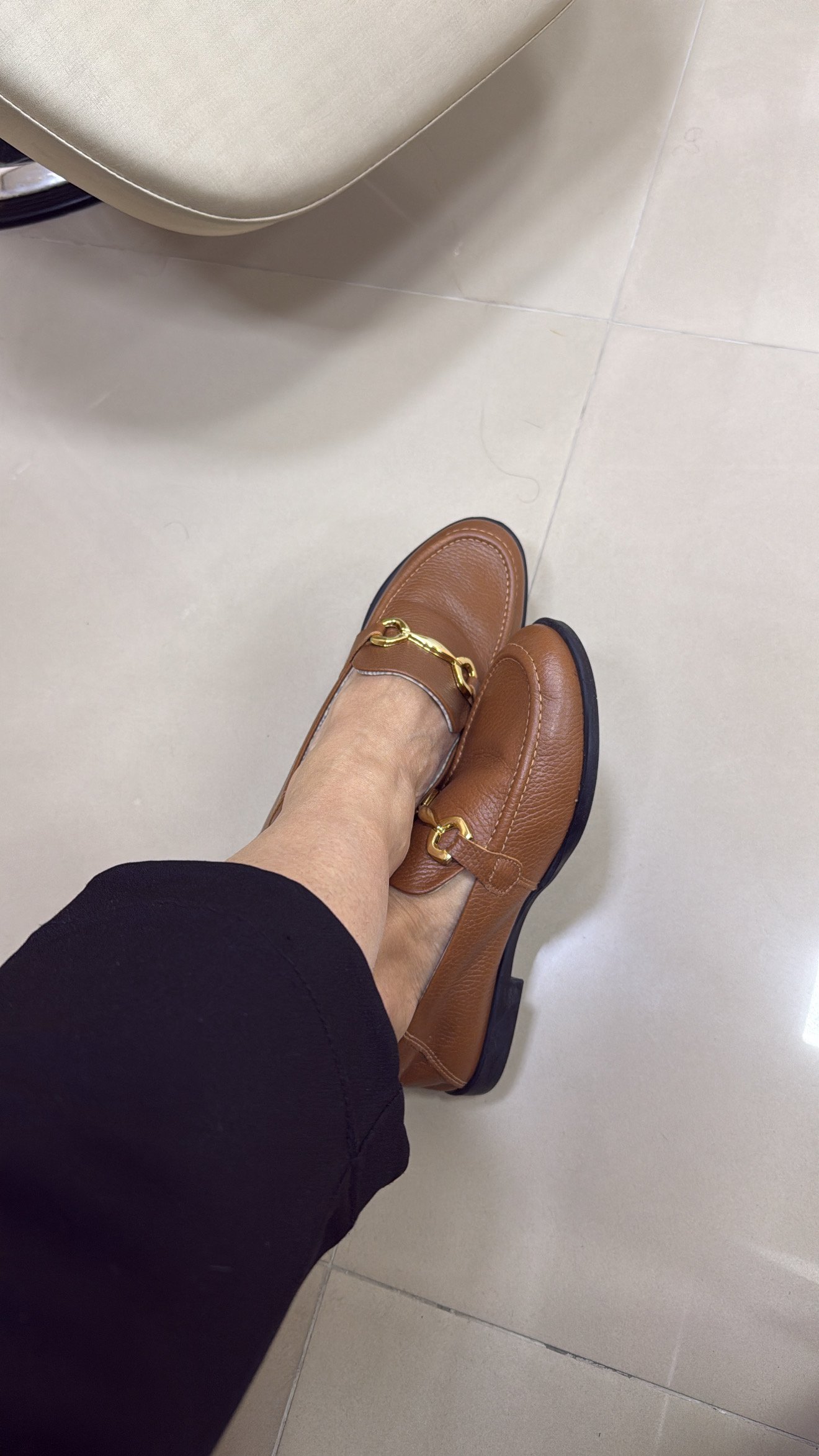• Mocassim Feminino Vittal Mara em Couro Legítimo Preto com Fivela Dourada