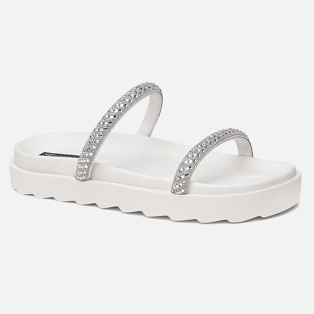 Papete Flat Feminina Marie OffWhite Com Strass Brilho Vittal