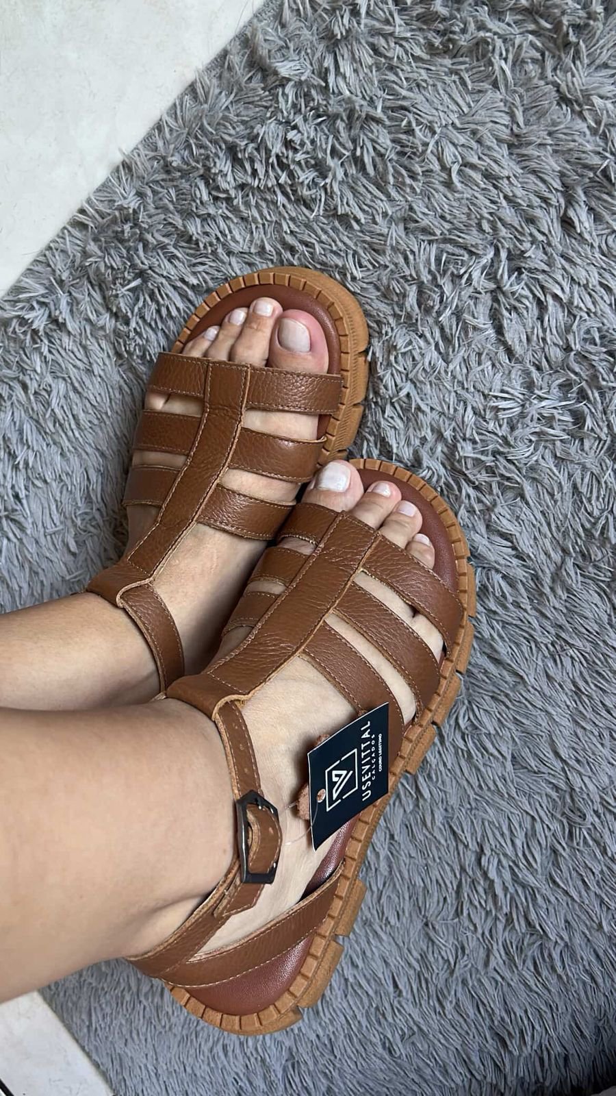 Sandália Feminina Vittal Couro Legítimo Caramelo Chloe Tratorada Confortável