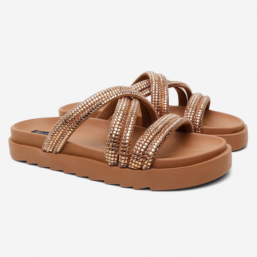 Sandália Papete Feminina Vittal Gaia Confort Caramelo Com Tiras Trançadas