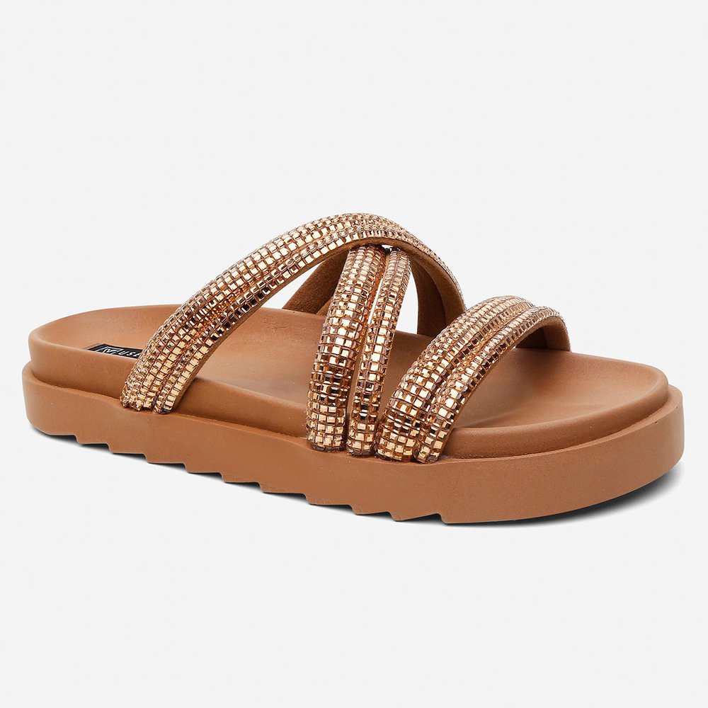 Sandália Papete Feminina Vittal Gaia Confort Caramelo Com Tiras Trançadas