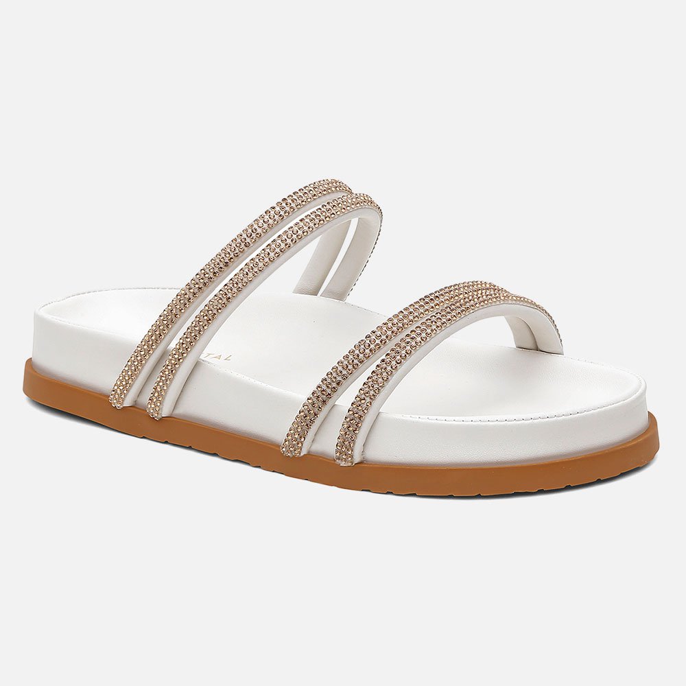 Sandália Papete Vittal OffWhite com Tira de Strass Dourada Solado Confort