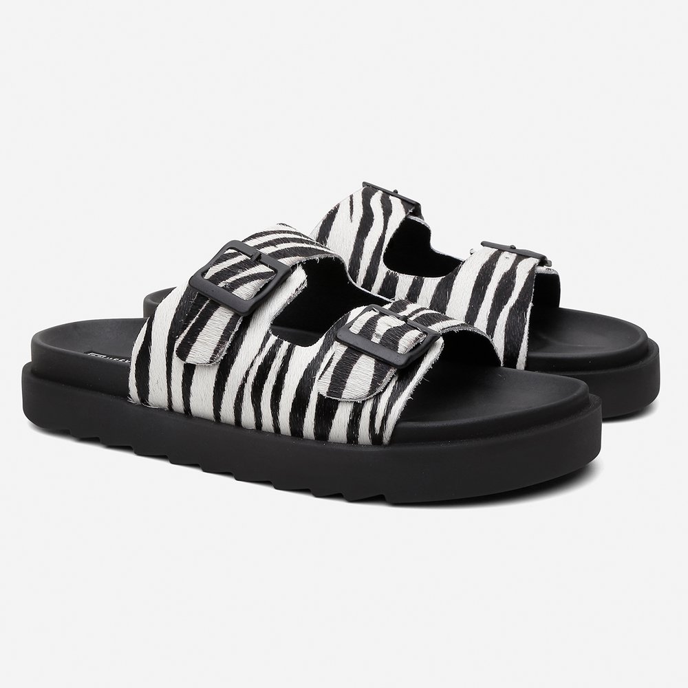 Sandália Papete Vittal Natalie em Couro Legitimo Zebra
