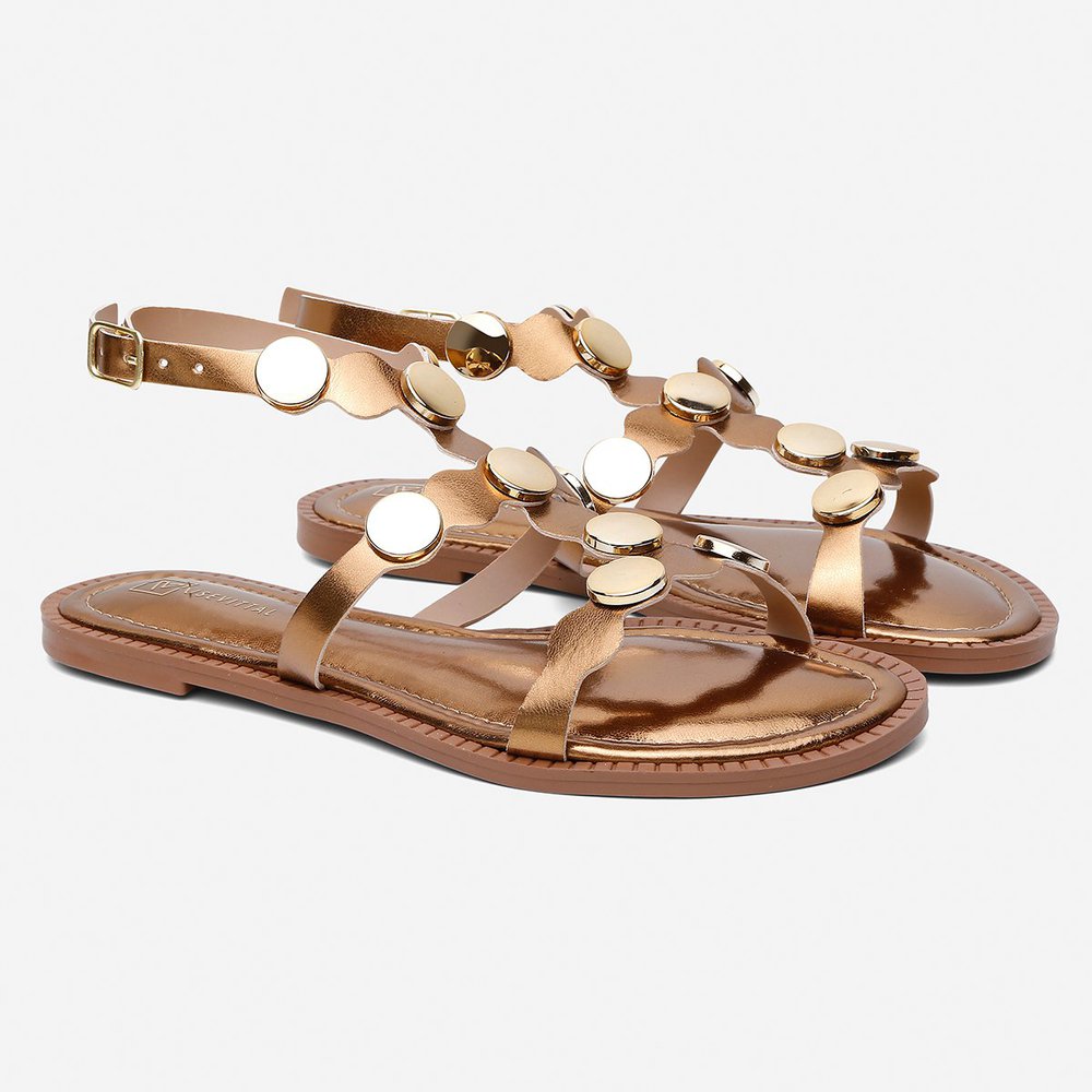 Sandália Rasteira Feminina Bella Bronze Tira Ajustável Vittal