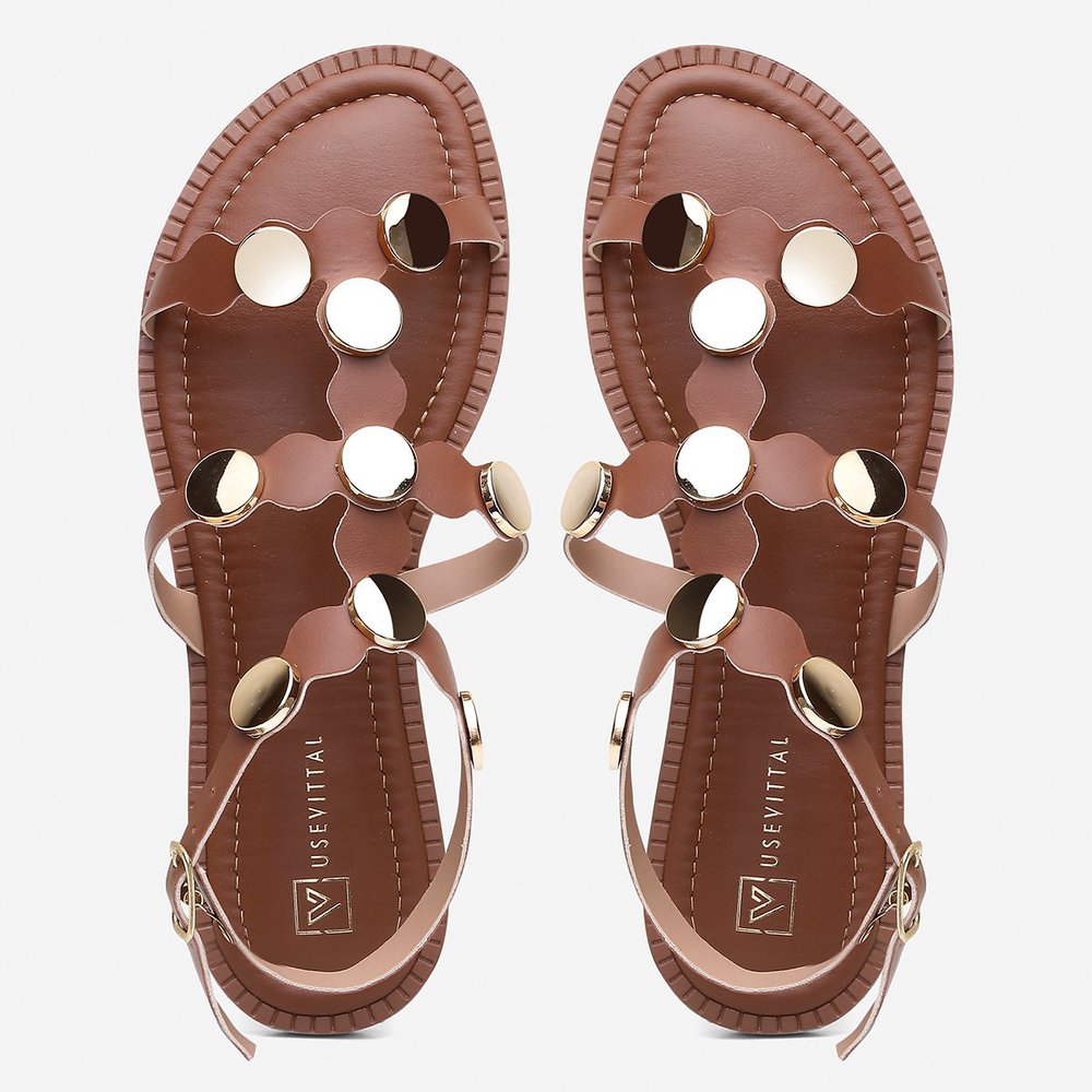 Sandália Rasteira Feminina Bella Caramelo Tira Ajustável Vittal