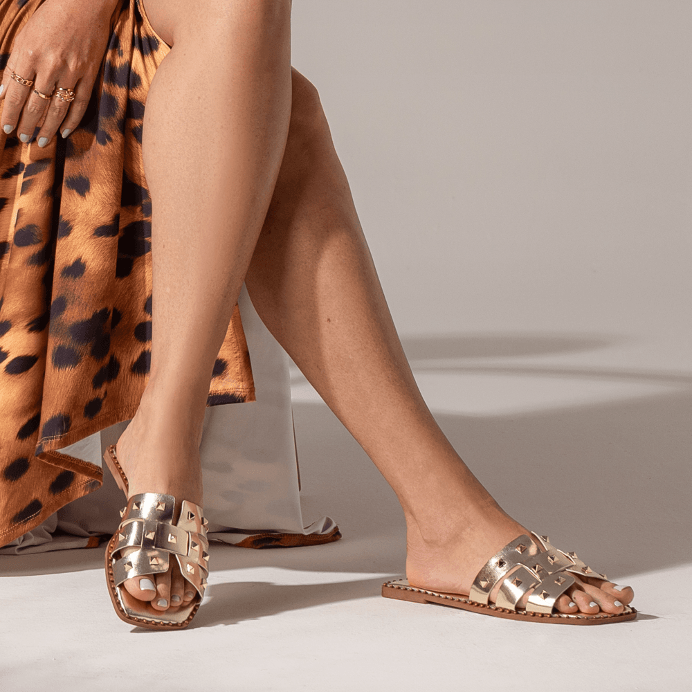 Sandália Rasteira Feminina Vittal Ananda Dourada