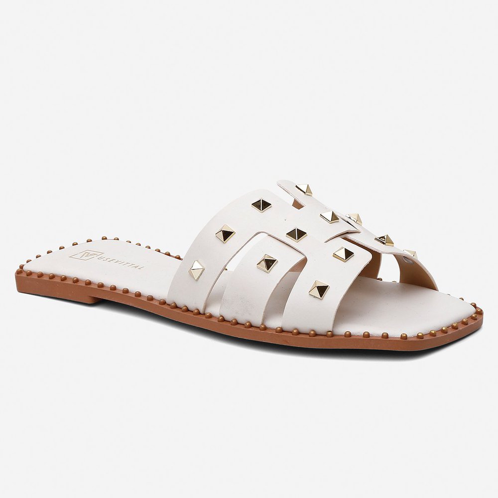 Sandália Rasteira Feminina Vittal Ananda Offwhite