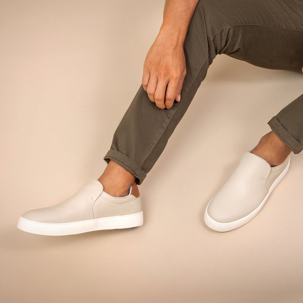 Tênis Masculino Slip On Casual Vittal em Couro OffWhite